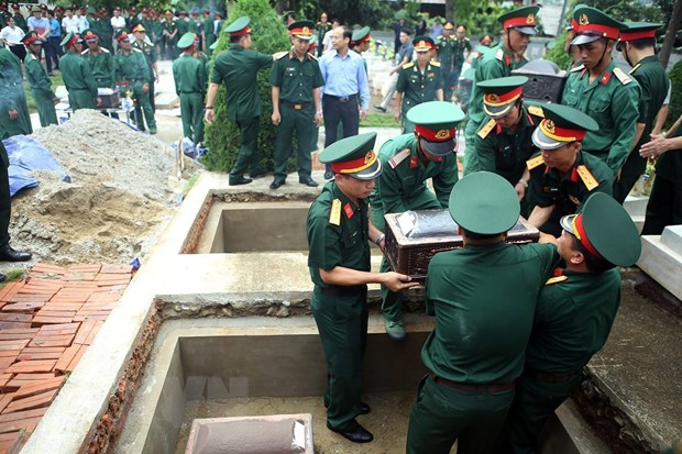 | Nghi lễ an táng hài cốt liệt sỹ. (Ảnh: Phan Tuấn Anh/TTXVN) |