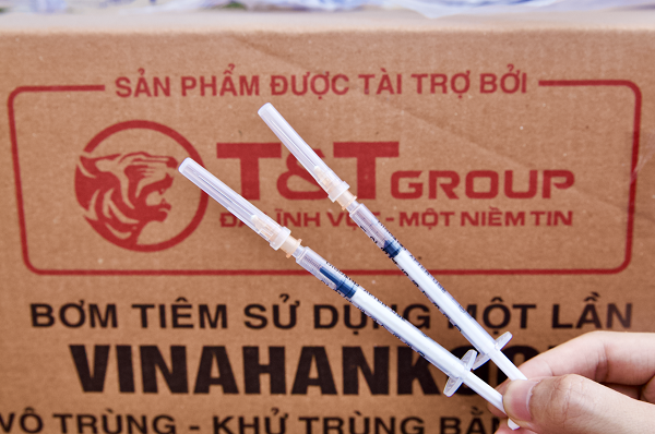 Bơm kim tiêm do T&T Group tài trợ là sản phẩm của Công ty CP thiết bị y tế VINAHANKOOK, được Bộ Y tế cấp giấy chứng nhận chất lượng.