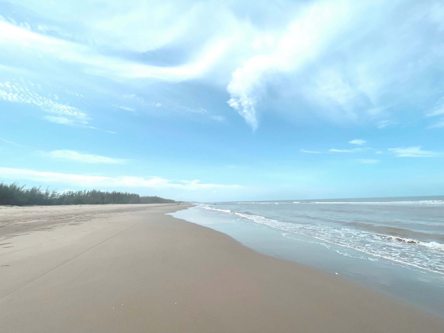 Bãi biển Tân Dân với vẻ đẹp nguyên sơ, bãi cát trắng mịn trải dài.