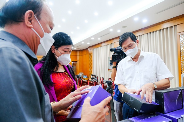 Đại diện Tập đoàn T&T Group trao tặng 1 triệu bộ kit xét nghiệm PCR cho đại diện Sở Y tế thành phố Hà Nội và UB MTTQ Việt Nam thành phố Hà Nội.