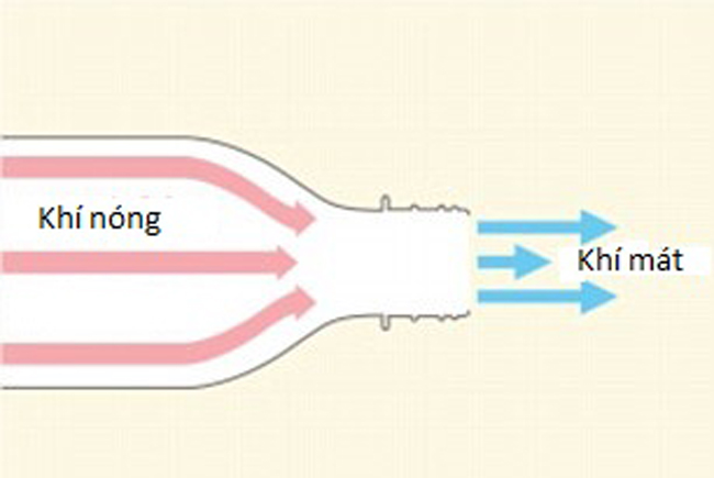 Cơ chế làm mát của Eco-Cooler bắt nguồn từ nguyên lý khi không khí nóng từ phần thân chai thoát ra cổ chai kích thước hẹp hơn sẽ chịu áp lực và trở thành khí mát. Có thể giải thích điều này bằng thử nghiệm đơn giản là khi hà hơi vào tay, bạn sẽ cảm nhận thấy hơi ấm nhưng nếu bạn chu môi và thổi ra thì đó lại là luồng khí mát.