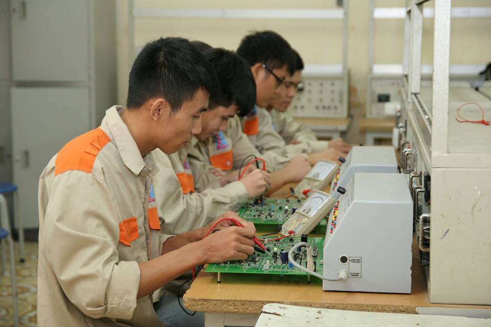 | Sinh viên trường nghề thực tập với máy móc |