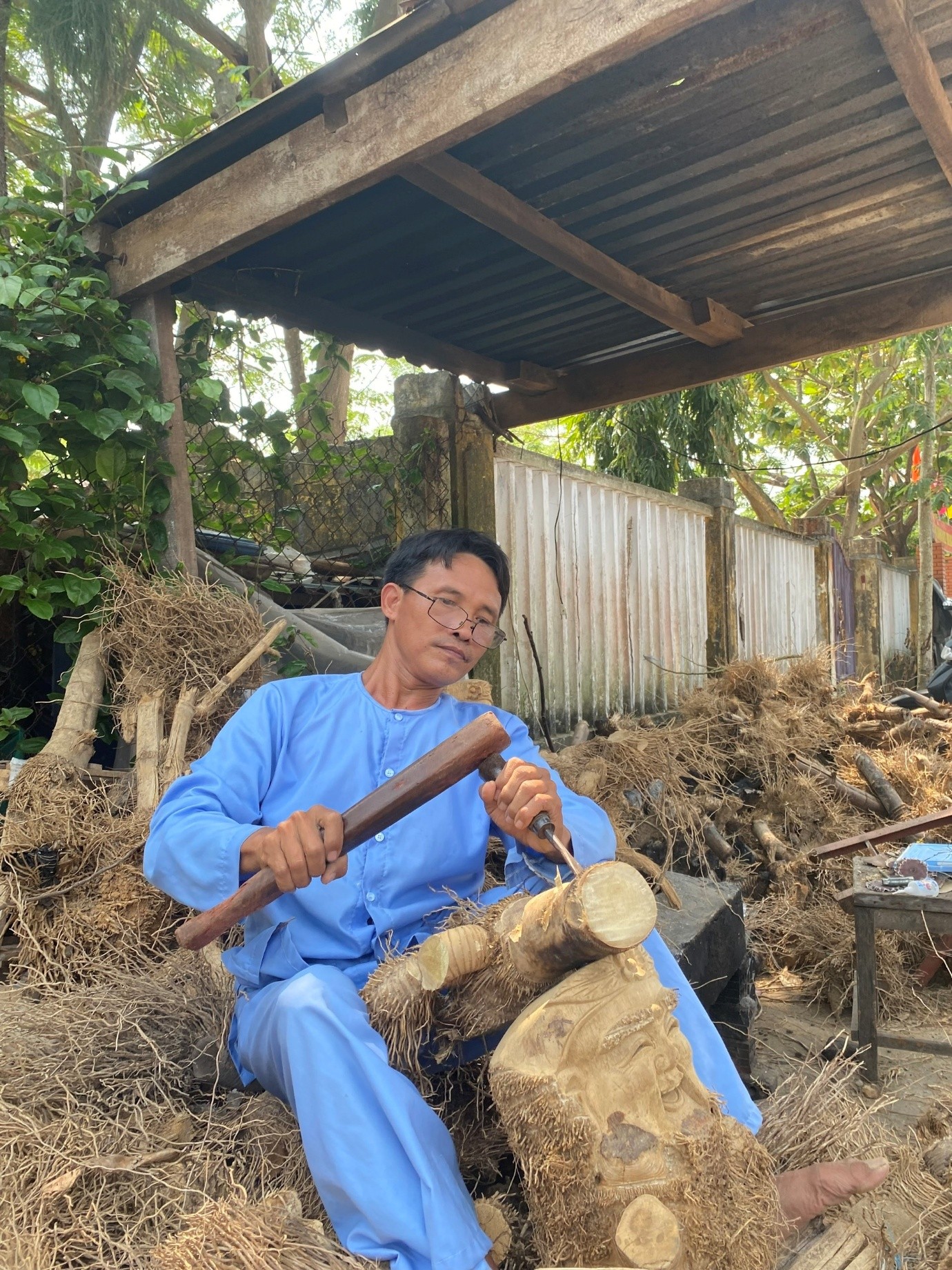 Giữa làng mộc Kim Bồng nổi tiếng xứ Quảng, nơi tiếng cưa tiếng đục vang vọng mỗi chiều, nghệ nhân Huỳnh Phương Đỏ lặng lẽ làm việc bên những gốc tre khô cằn – những phần tưởng chừng bị bỏ đi, không còn giá trị sử dụng. Thế nhưng, từ bàn tay khéo léo và tâm huyết của anh, những khối tre gân guốc ấy lại được hồi sinh thành các tác phẩm nghệ thuật độc đáo, mộc mạc và đậm chất Việt.