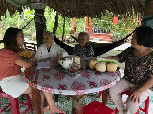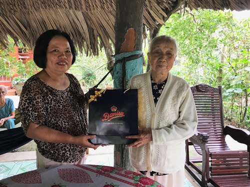 | Chị Nguyễn Thanh Thủy - Trưởng phòng Người có công Sở LĐ-TB&XH tỉnh Tiền Giang tới thăm mẹ Nguyễn Thị Sao |
