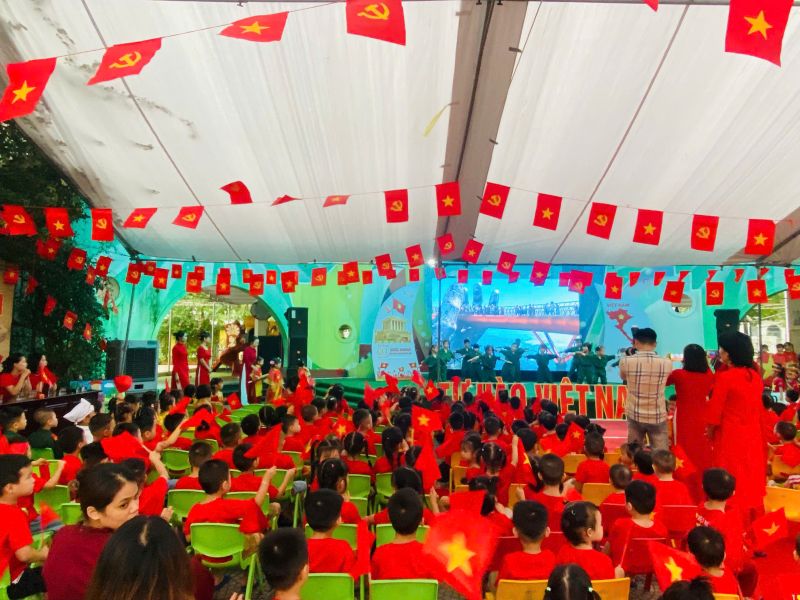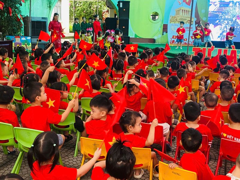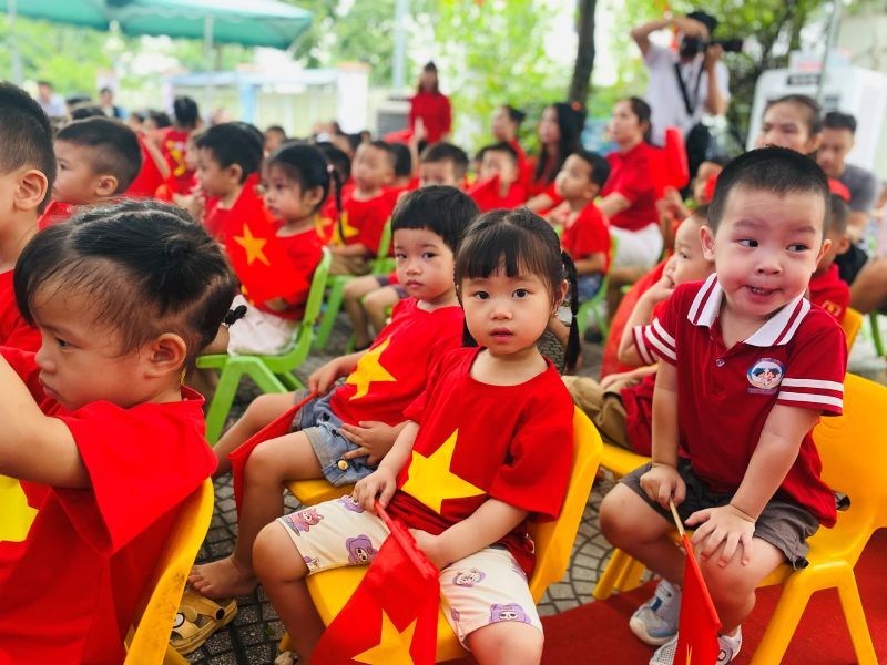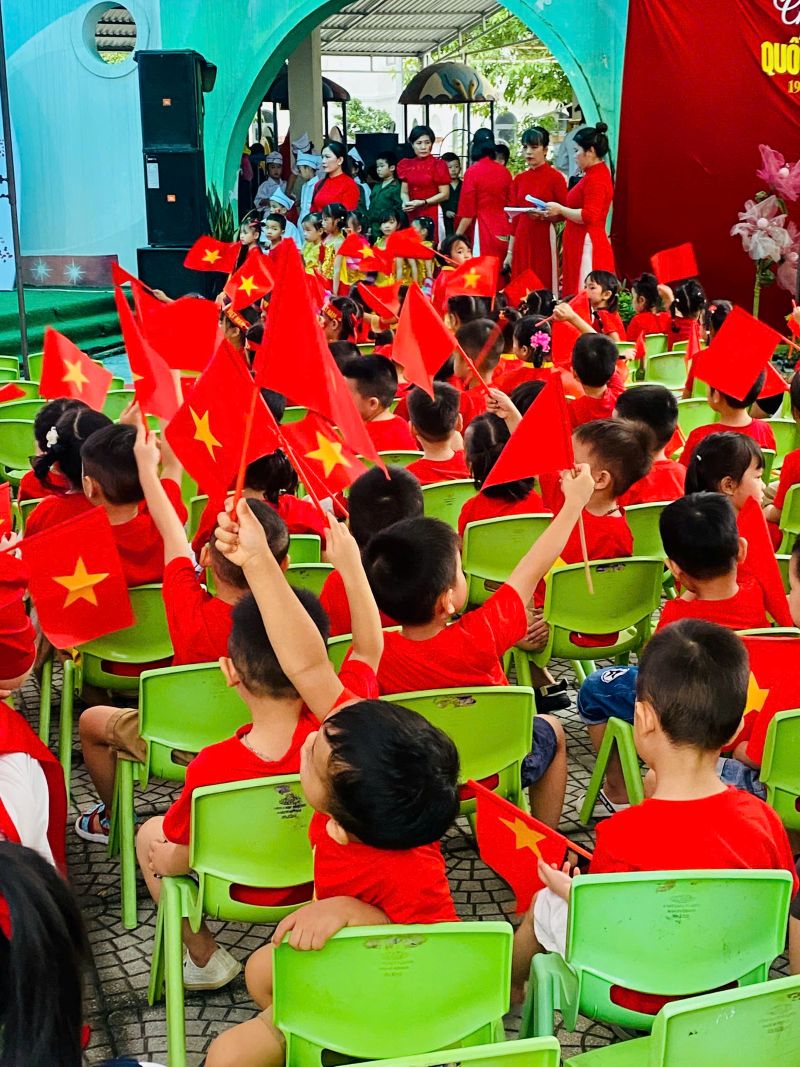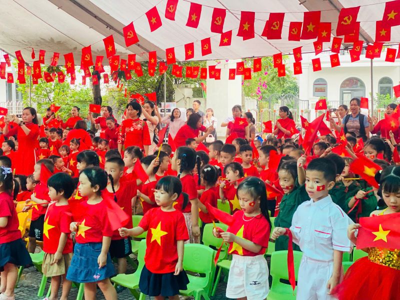 Những bàn tay nhỏ xinh đang vẫy cờ Tổ quốc- các bé đã cùng nhau tạo nên những hình ảnh đẹp, thể hiện niềm tự hào và tình yêu quê hương đất nước ngay từ lứa tuổi mầm non.