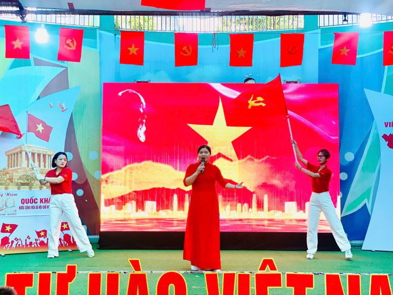 Nhưng năm nay đặc biệt hơn khi năm nay đất nước ta kỷ niệm 80 năm ngáy Cách mạng tháng 8 thành công và 80 năm Quốc khánh nước CHXHCN Việt Nam, ban giám hiệu nhà trường đã tổ chức chương trình đặc biệt này- Cô Chu Thị Hiên, Phó Hiệu trưởng nhà trường chia sẻ.