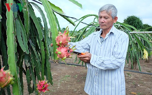 | Cựu chiến binh Đoàn Trung Ngọc được mệnh danh là “ông vua thanh long ruột đỏ” ở Đồng Nai. |