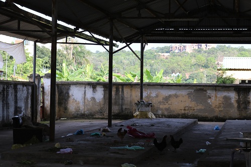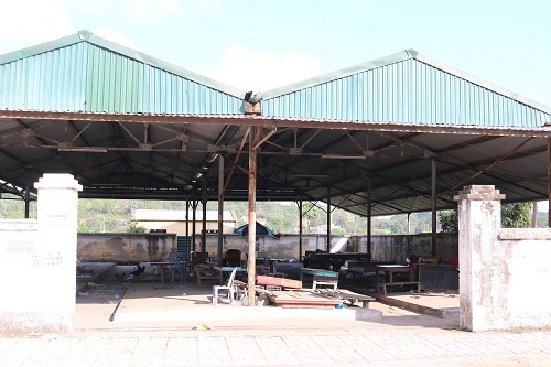 | Chợ chính thì để không, làm “sân chơi” cho gia cầm. |