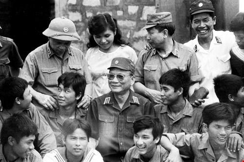 | Đại tướng Lê Đức Anh chụp ảnh cùng các chiến sỹ. |