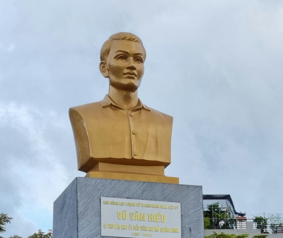 Tượng cụ Vũ Văn Hiếu tạc lần thứ hai năm 1999, đặt ở sân Nhà văn hóa công nhân mỏ than Hà Tu.