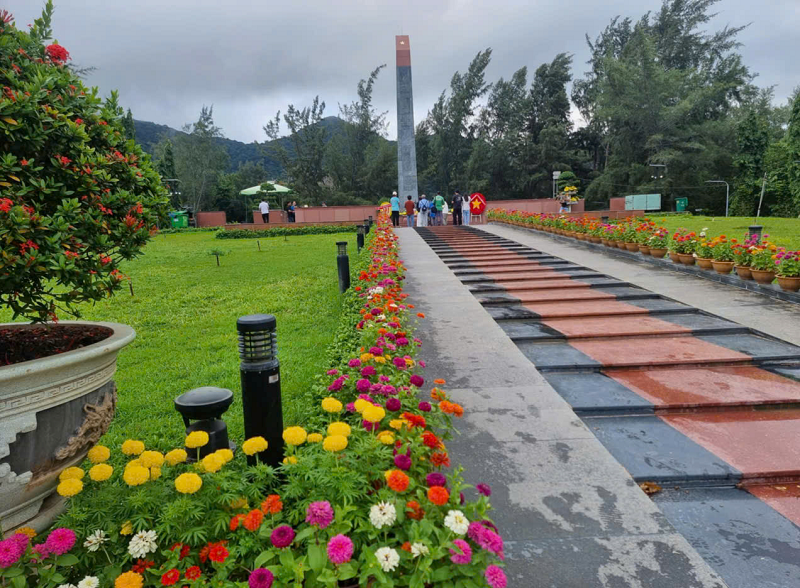 Tiết xuân Ất Tỵ khuôn viên đài tưởng niệm Anh hùng liệt sĩ trung tâm nghĩa trang Hàng Dương, hoa nở lung linh sắc màu, nhang bay khói tỏa linh thiêng.