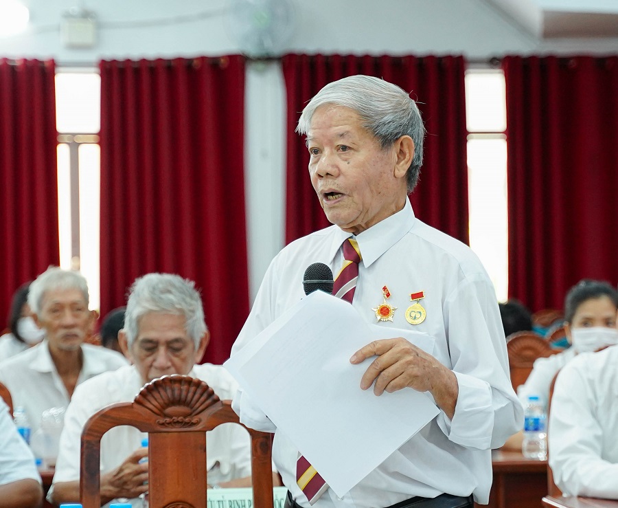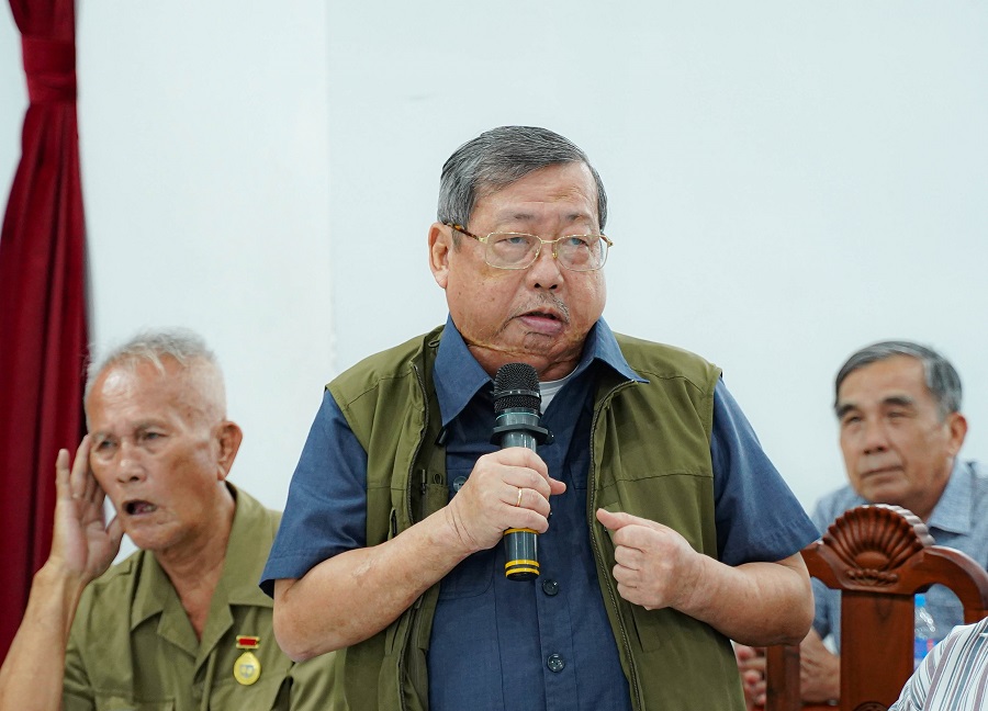 Ông Nguyễn Minh Hoàng - Trưởng ban liên lạc Cựu tù binh Phân khu B8 Phú Quốc chia sẻ tại tọa đàm.