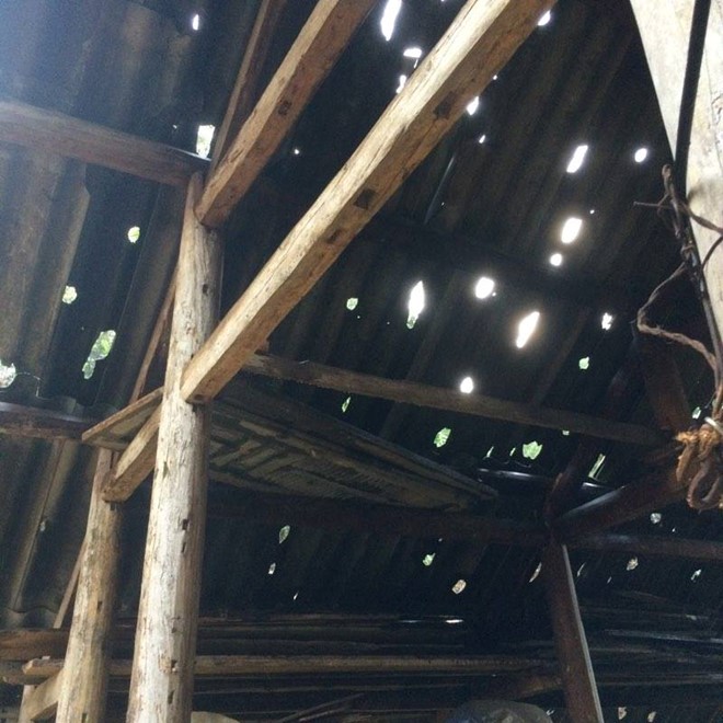 | Những ngôi nhà lợp bằng tấm lợp fibro xi măng thủng lỗ chỗ. Ảnh: Thùy Linh. |