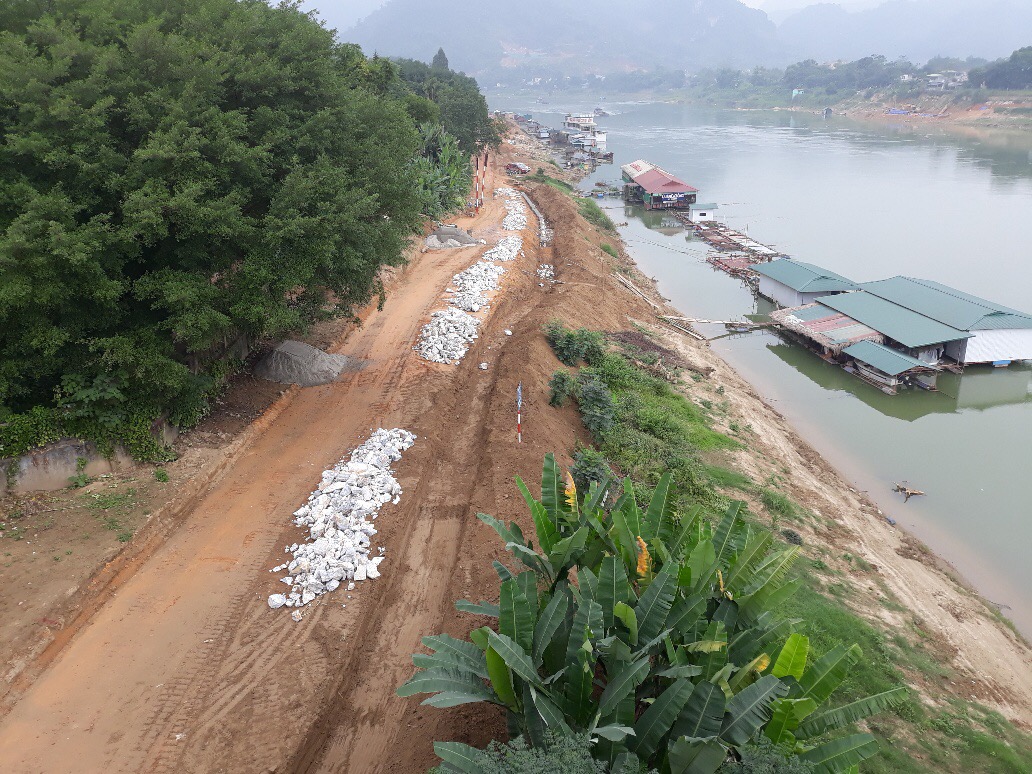| Một đoạn khác đang thì công trên kè sông Lô. |