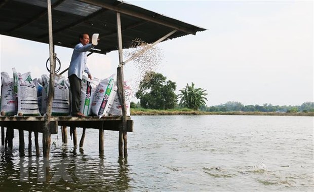 | Nghề nuôi cá tra, mỗi năm mang lại nguồn thu nhập hàng tỷ đồng cho gia đình ông Đậu. (Ảnh: Công Mạo/TTXVN) |