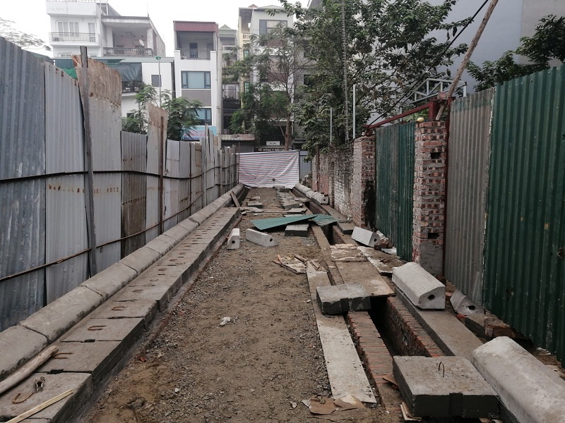 Hiện trạng ngổn ngang của con mương đang thi công thì bị UBND quận Ba Đình và UBND phường Ngọc Hà đình chỉ.