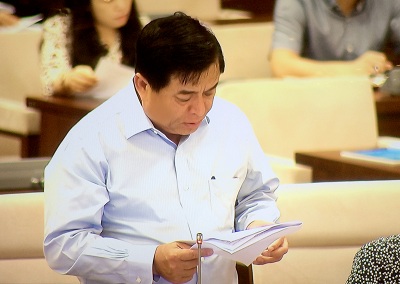 | Bộ trưởng Bộ Kế hoạch và Đầu tư Nguyễn Chí Dũng trình bày Tờ trình về dự án Luật -Ảnh: VGP/Nguyễn Hoàng |