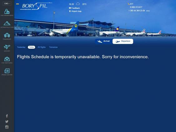 Sân bay Borispol và Kiev cũng bị ảnh hưởng bởi vụ tấn công. Màn hình hiển thị các chuyến bay đến và đi trên trang web của sân bay Borispol không được cập nhật.
