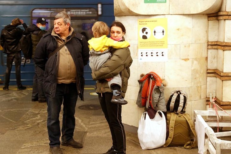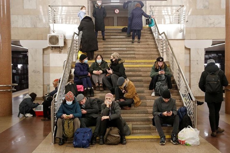 Tại thủ đô Kiev, bầu không khí ở đây được mô tả là “yên tĩnh đến kỳ lạ”. Người dân xếp thành những hàng dài để chờ rút tiền tại các máy ATM, trong khi tin tức về chiến dịch quân sự của Nga vẫn đang được trình chiếu. Các tuyến tàu điện ngầm tấp nập người qua lại xách theo nhiều túi hoặc những chiếc va li. Nhiều người cũng đi đến các nhà ga để trú ẩn.