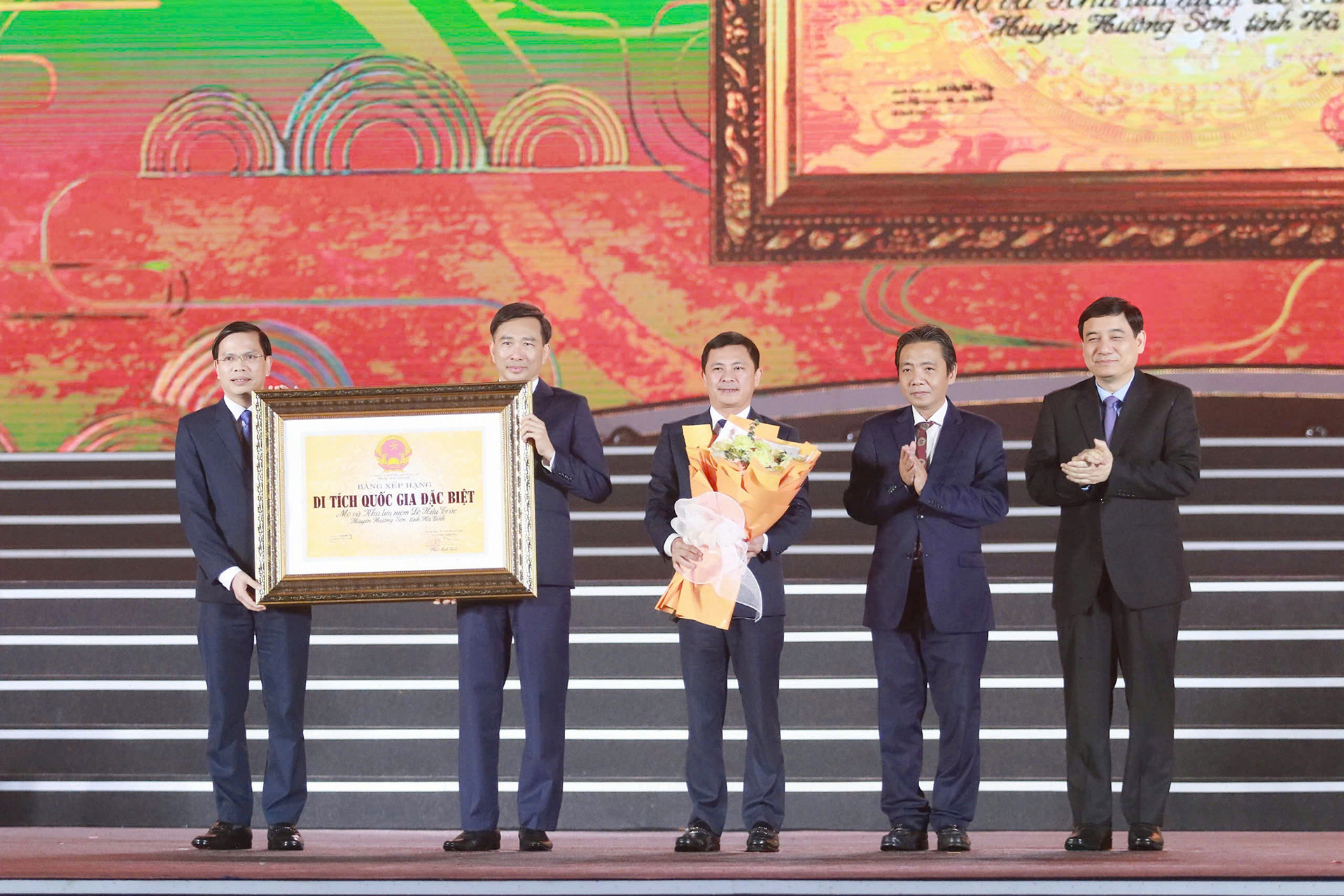 Trong buổi lễ, Thứ trưởng Nguyễn Minh Vũ đã trao nghị quyết vinh danh của UNESCO cho lãnh đạo tỉnh Hà Tĩnh. Tiếp theo, Thứ trưởng Bộ Văn hóa, Thể thao và Du lịch Hoàng Đạo Cương đã trao bằng xếp hạng Di tích Quốc gia đặc biệt cho Mộ và Khu lưu niệm Hải Thượng Lãn Ông - Lê Hữu Trác.