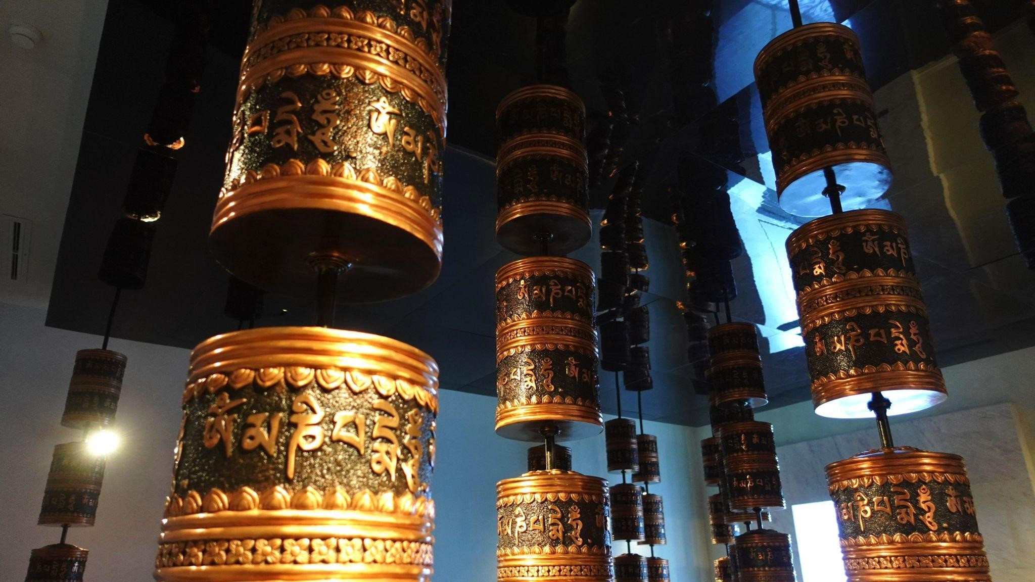 Trụ Kinh Luân (bánh xe cầu nguyện) tại khu triển lãm Phật giáo.