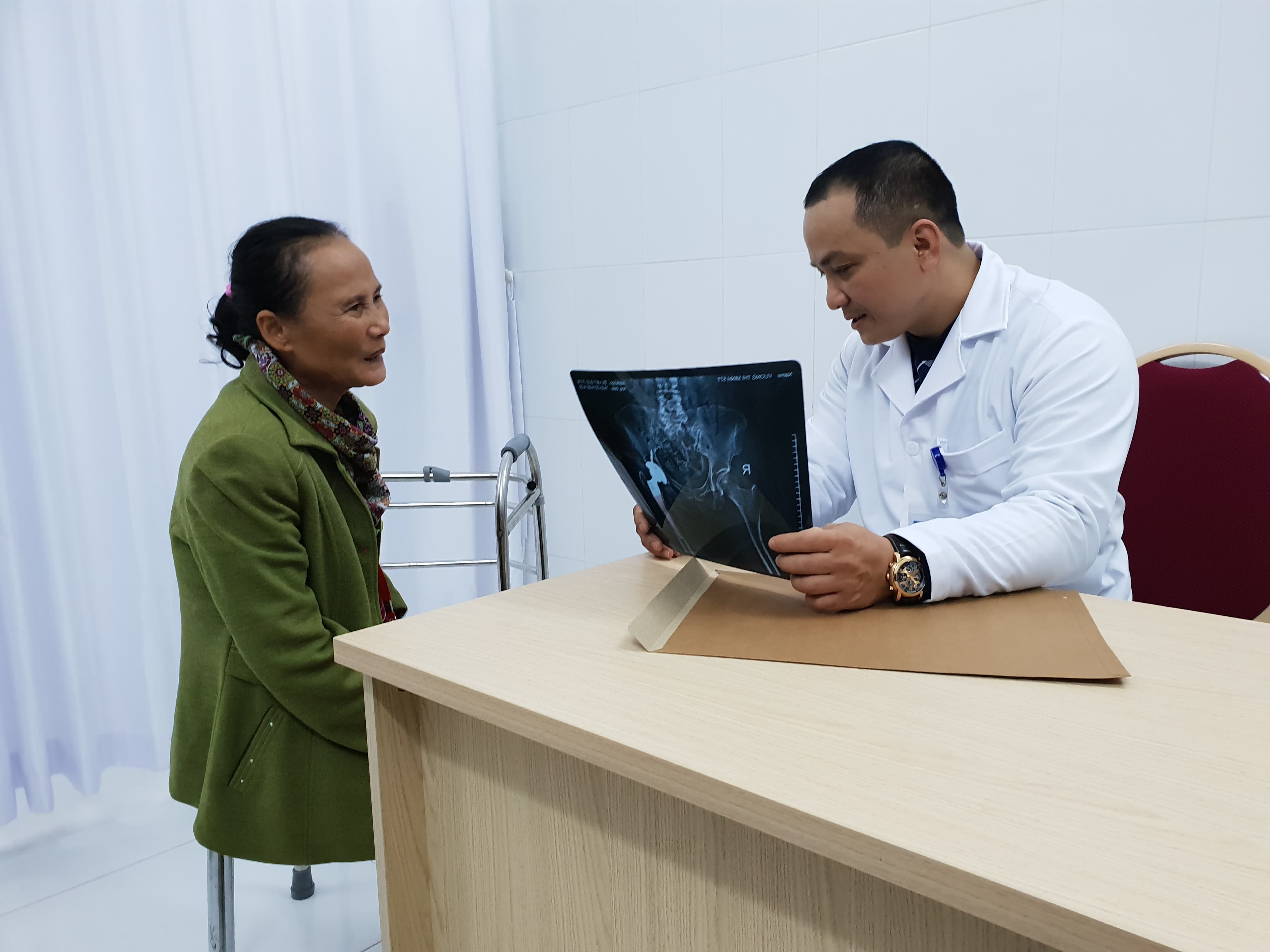 | Bệnh nhân u xương tế bào khổng lồ thăm khám lại sau thời gian được ghép xương. Ảnh: VGP/Thùy Giang |