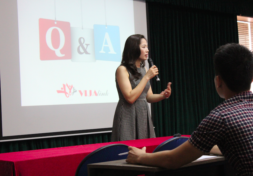 | VIJA Link cũng nhận được rất nhiều những câu hỏi của các bạn sinh viên trong phần hỏi đáp. Những câu hỏi được các bạn sinh viên đưa ra xoay quanh các vấn đề như: thông tin tuyển dụng của các công ty Nhật Bản, làm thế nào để thành công trong việc ứng tuyển cho các Công ty Nhật Bản, những điều cần phải chuẩn bị nếu muốn ứng tuyển khi còn đang ngồi trên ghế nhà trường, quyền lợi và chế độ bảo hiểm khi làm việc tại Nhật Bản... Các câu hỏi đều được CEO Trần Thị Khanh giải đáp chi tiết và đưa ra những lời khuyên thích hợp đối với các bạn sinh viên. |