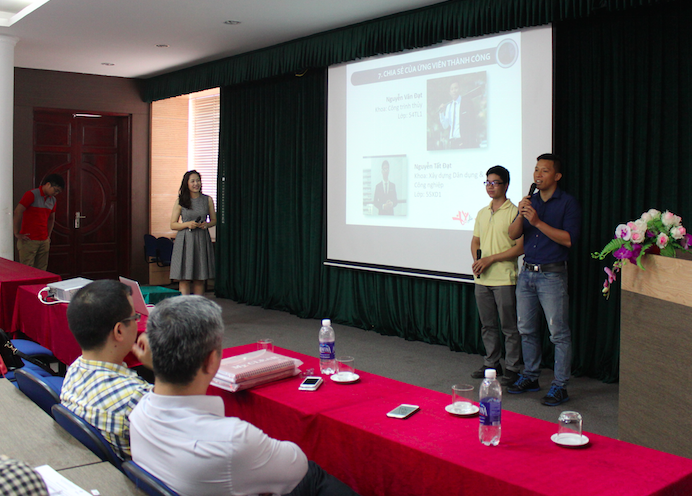 | Ứng viên Nguyễn Văn Đạt đã chia sẻ những kinh nghiệm quý giá của mình sau 6 cuộc phỏng vấn để được chính thức nhận làm việc tại Nhật Bản. Những khó khăn, trải nghiệm và quá trình đạt được kết quả cũng được ứng viên Nguyễn Tất Đạt chia sẻ với các bạn sinh viên tại Hội thảo. |