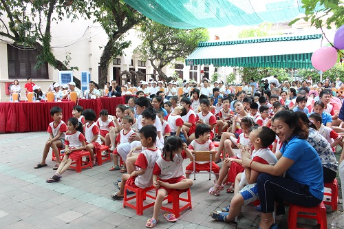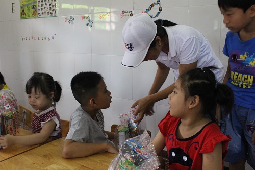 | Chương trình kết thúc bằng hoạt động tham quan trung tâm, thăm hỏi trao tặng kẹo bánh cho các bé. |