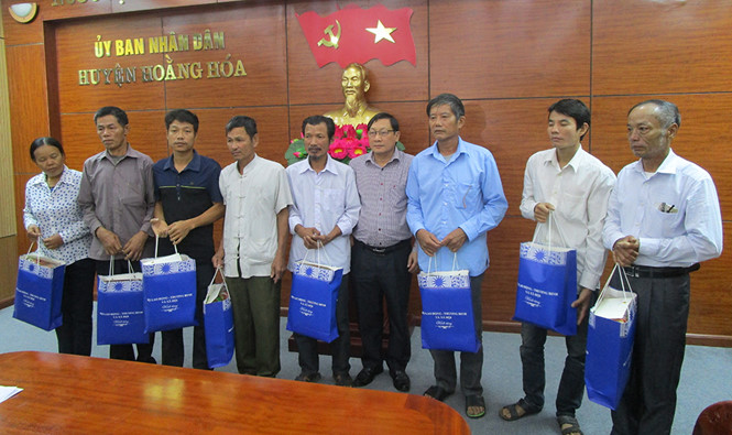 | Ông Đào Ngọc Lợi, Cục trưởng Cục NCC (thứ tư từ phải sang), trao quà, động viên thân nhân 8 liệt sĩ hy sinh tại Hang Tám Cô trong Lễ Công bố kết quả giám định gien các liệt sĩ Hang Tám Cô. Ảnh: Internet |