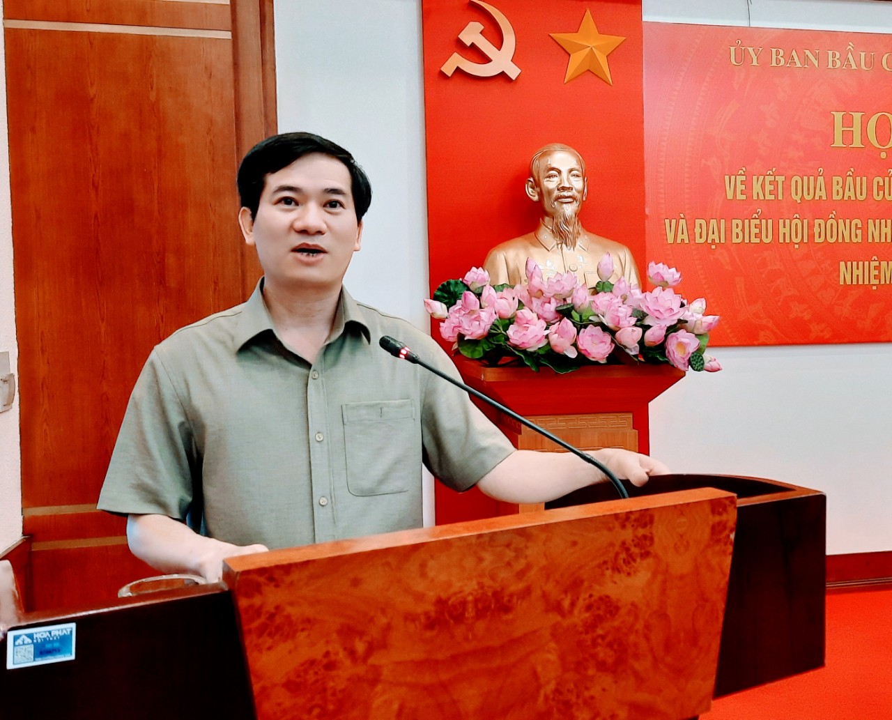 Đồng chí Nguyễn Văn Hồi, Trưởng Ban Dân vận Tỉnh ủy, Chủ tịch Ủy ban MTTQ tỉnh, Phó Chủ tịch HĐND tỉnh, Phó Trưởng Ban Chỉ đạo, Phó Chủ tịch Ủy ban bầu cử tỉnh, công bố danh sách những người trúng cử đại biểu HĐND tỉnh khóa XIV.