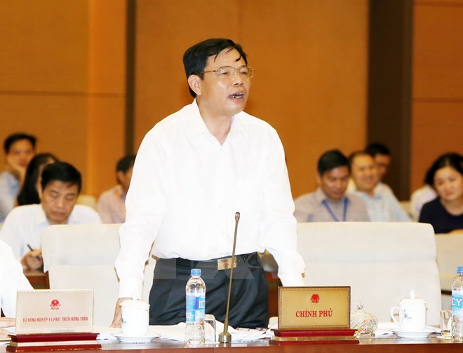 | Bộ trưởng Bộ Nông nghiệp và Phát triển Nông thôn Nguyễn Xuân Cường phát biểu tại phiên họp. (Ảnh: Nguyễn Dân/TTXVN) |