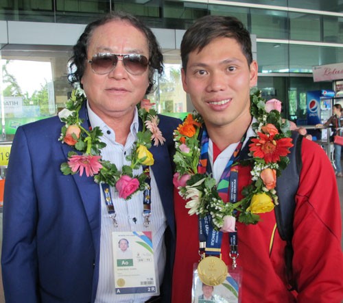 | VĐV Võ Thanh Tùng (phải) chỉ giành HCB ở nội dung sở trường 50 m bướm Ảnh: Đông Linh |
