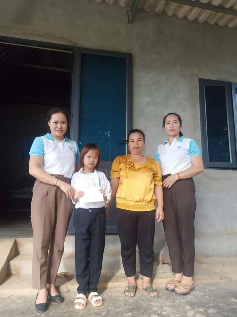 Chị cùng Hội LHPN xã trao tặng suất quà cho hai chị hội viên phụ nữ nghèo có hoàn cảnh đặc biệt khó khăn