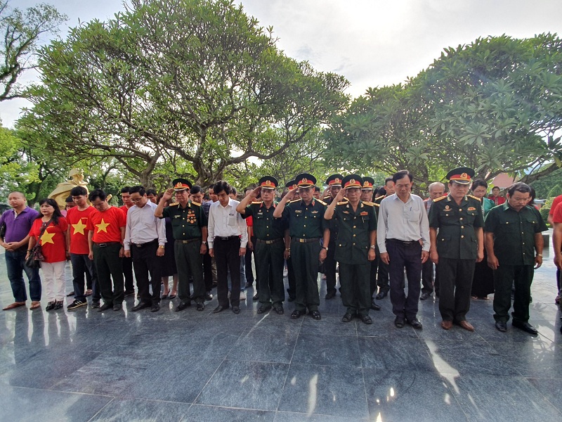 Trong giây phút trang nghiêm Đoàn công tác Hiệp hội, Tạp chí HNHN và các cơ quan, đơn vị tưởng niệm các Anh hùng Liệt sỹ tại Nghĩa trang Điện Biên Phủ.