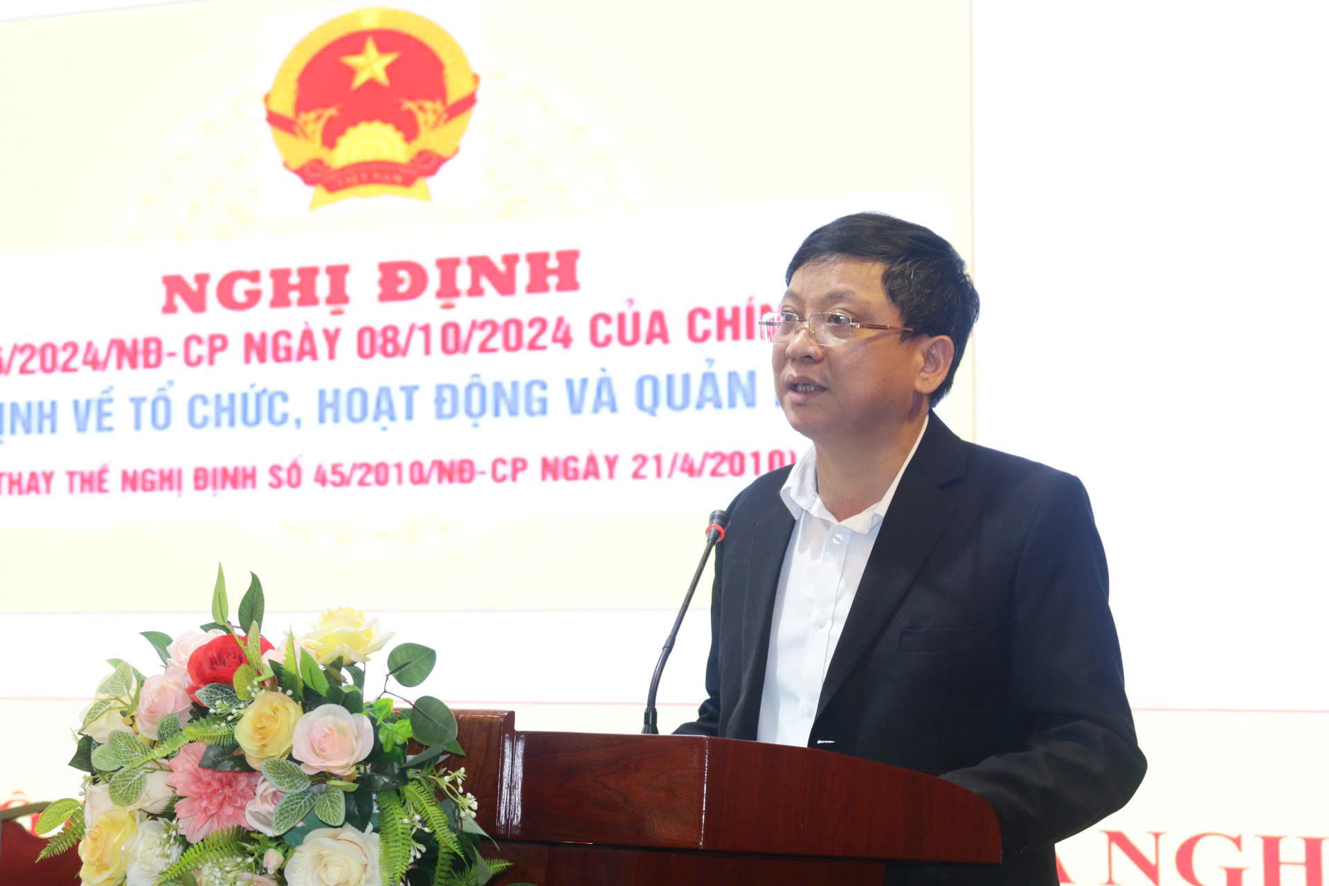 Ông Tạ Tấn, Phó vụ trưởng Vụ Tổ chức phí chính phủ (Bộ Nội vụ) phát biểu tại Hội nghị