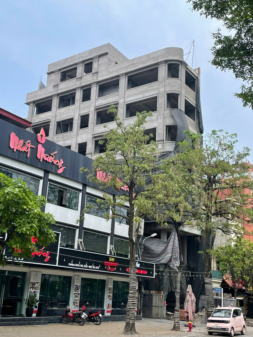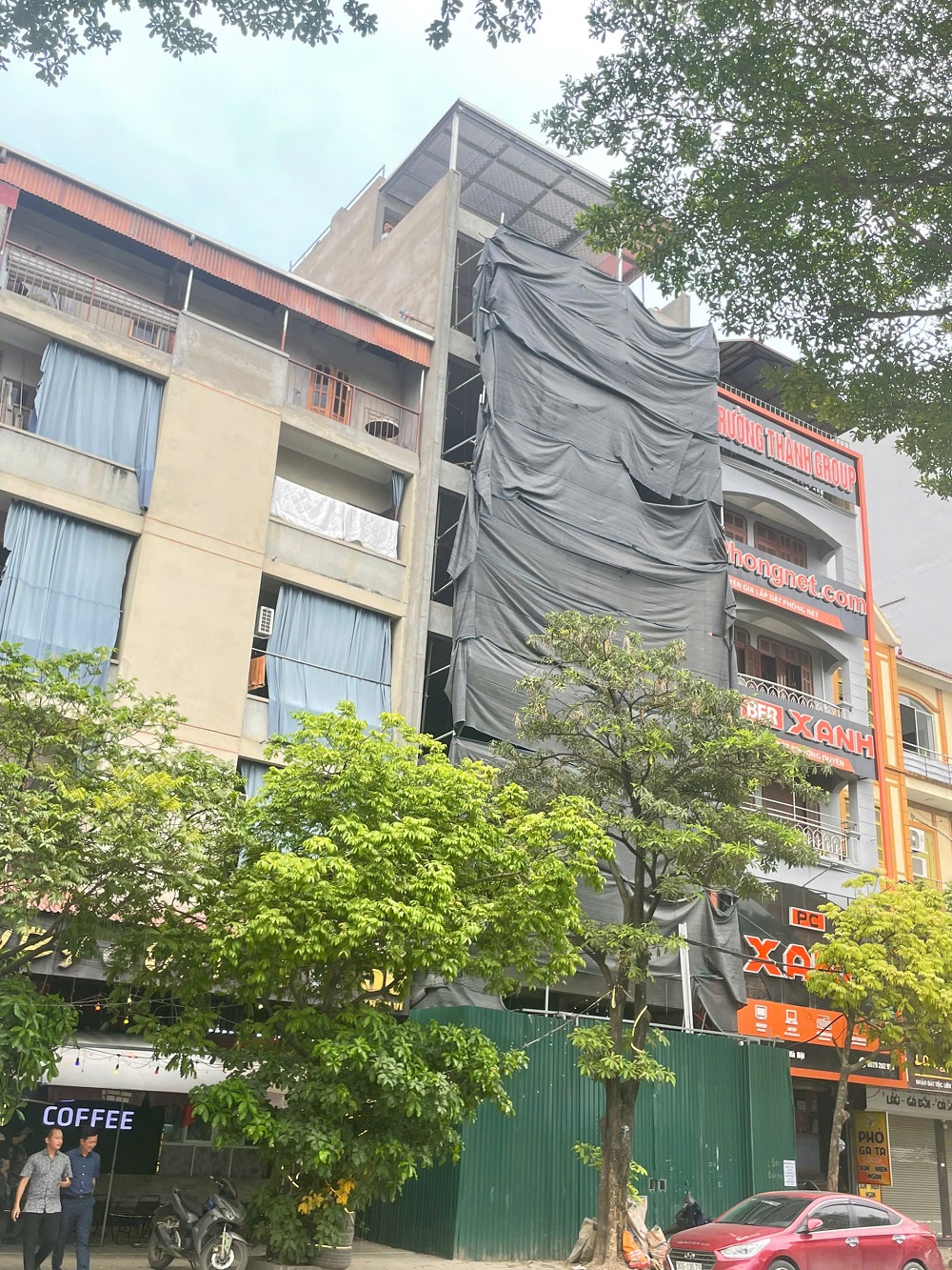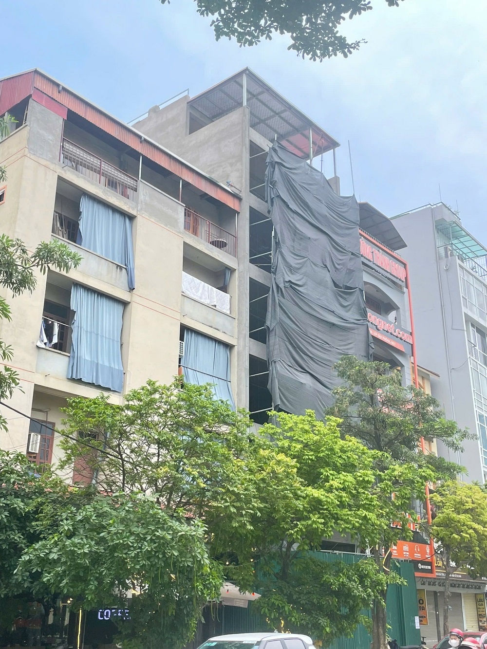 Ngay gần đấy, công trình tại địa chỉ 54 Trần Vỹ với hiện trang là 6 tầng, nhưng lô gia và phần tum đều được kéo ra nới rộng làm diện tích sinh hoạt