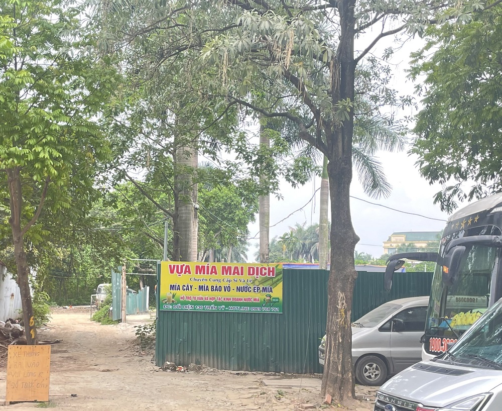 Không chỉ vấn đề về trật tự xây dựng, trên địa bàn phường còn để tình trạng sử dụng đất công sai mục đích. Tại địa chỉ đối diện 136 Trần Vỹ mặc dù khu đất quây tôn và được dán biển "TÀI SẢN CÔNG, CẤM VI PHẠM" nhưng bên trong lại được một đơn vị làm điểm tập kết vật liệu và phế thải xây dựng, làm bãi để xe và làm vựa mía:
