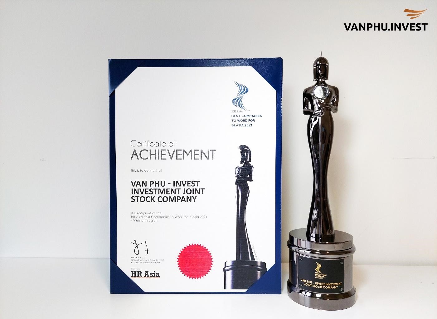 Theo công bố của HR Asia, Văn Phú – Invest vinh dự được trao tặng giải thưởng “Nơi làm việc tốt nhất châu Á” năm 2021 và được đánh giá cao nhờ môi trường, văn hóa làm việc trẻ trung, năng động, có sự đoàn kết cũng như sức hút lớn đối với nhiều nhân sự giỏi trong ngành Bất động sản. Việc được vinh danh ngay lần đầu tham dự đã khẳng định khẳ năng kiến tạo những giá trị văn minh trong chính nội tại của Văn Phú - Invest.