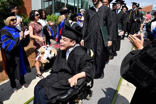 | Trần Mạnh Chánh Quân tiến vào lễ đường ngày nhận bằng tốt nghiệp ĐH Georgia Gwinnett, Mỹ |