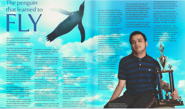 Đó là những trích đoạn về chân dung chàng trai Việt Trần Mạnh Chánh Quân trong bài viết “Chim cánh cụt học bay” đăng trên tạp chí của Trường Georgia Gwinnett College, Mỹ vào tháng 11/2016.