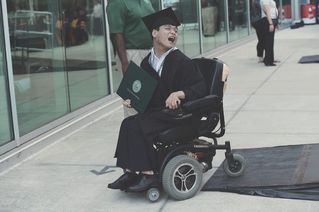 | Chàng trai bại não chưa bao giờ đầu hàng trước khó khăn. |