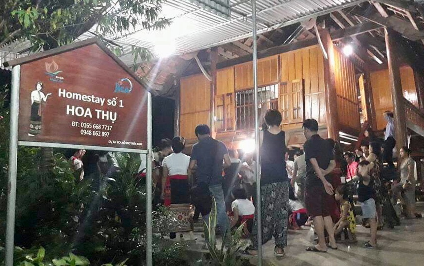 Hỏi thêm về văn hóa văn nghệ và việc lưu trú, chị Hoa bảo: “Các tổ văn nghệ đều tự biên tự diễn các điệu múa như: Múa sạp, múa cồng chiêng, múa khắc luống...mang bản sắc truyền thống của người Thái. Còn việc ngủ nghỉ, theo truyền thống phong tục riêng của người Thái, mọi người được ngủ chung nhà sàn. Tuy nhiên, cũng tùy theo từng gian nhà để khách, bố mẹ hoặc vợ chồng ngủ (gian nhà ngoài trừ vợ chồng ra, ai cũng được ngủ; gian nhà giữa dành cho bố mẹ; gian nhà trong dành cho vợ chồng, con dâu). Đặc biệt hơn nữa, khi du khách đến tham quan, trải nghiệm, nếu đến đúng vào dịp lễ tết, hoặc có đám cưới đám hỏi, thì du khách được chứng kiến hình ảnh lễ té nước, nghi thức riêng mà chỉ có phong tục người Thái mới có.