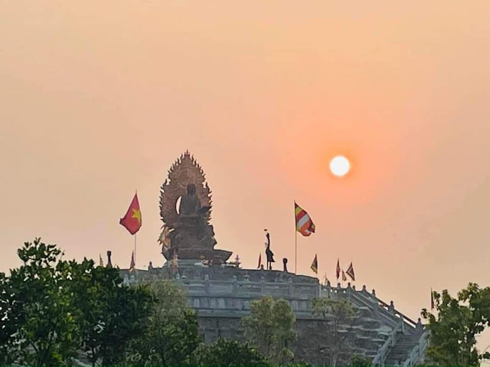 Tượng Phật Hoàng Trần Nhân Tông bằng đá Sapia cao 5,1 mét, nặng 75,2 tấn (tượng trưng Phật Hoàng 51 tuổi và thời gian nhập niết bàn) tại chùa Hổ Sơn - Ảnh: Cơ sở cung cấp.