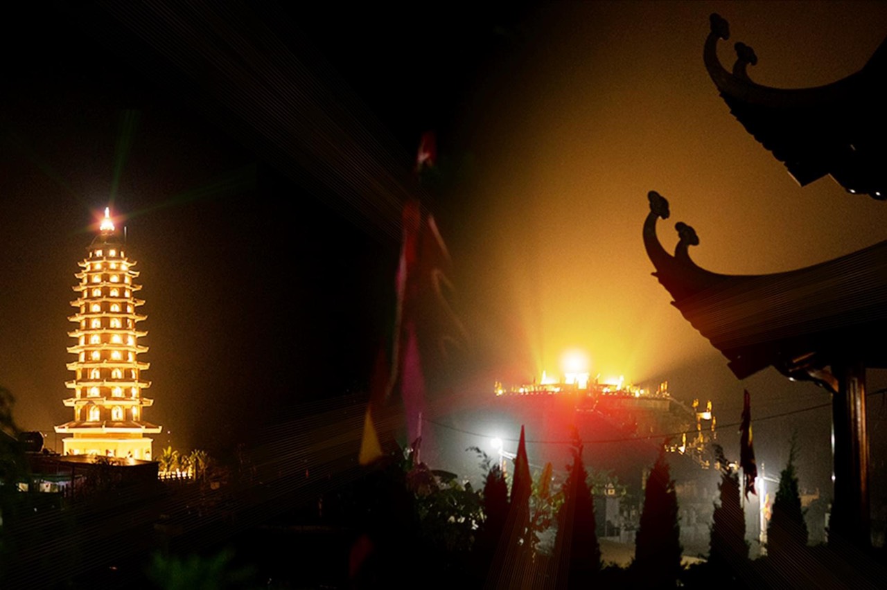 Quang cảnh chùa Hổ Sơn - đền Huyền Trân trong đêm Đại Lễ Phật đản 2023 - Ảnh: Cơ sở cung cấp.