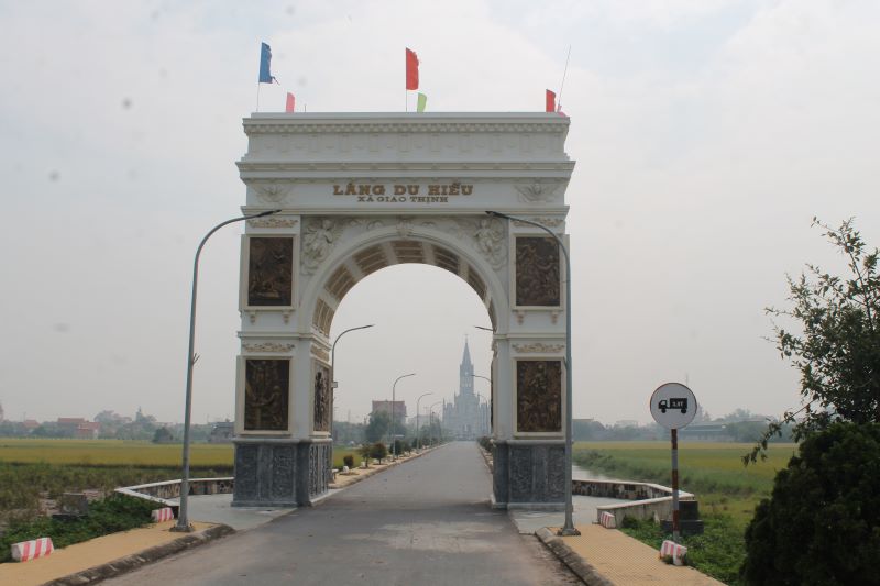 Cổng làng Du Hiếu, xã NTM kiểu mẫu Giao Thịnh - Ảnh: Hồ Thanh