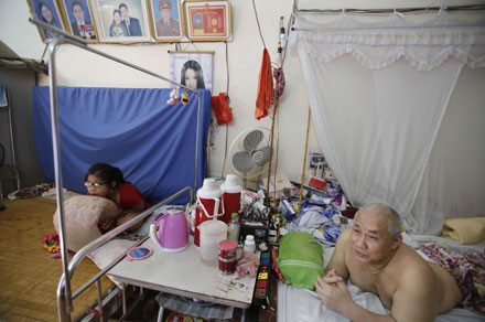 Hai vợ chồng thương binh Nguyễn Thị Hồng và ông Hoàng Văn Uyên (cựu chiến binh) quê Hà Tĩnh tại khu ở gia đình.