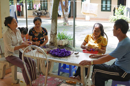 Diện tích sử dụng của trung tâm rộng 2,5ha, chia làm ba khu: Khu tập thể thương - bệnh binh (không có vợ hoặc vợ sống ở quê); khu gia đình gồm 30 thương - bệnh binh; khu văn phòng cơ quan. Trong ảnh, những người thân đến chăm sóc các thương binh tại trung tâm.