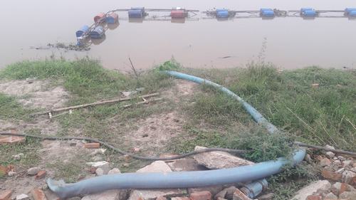 | Đường ống hút cát ngay ven chân đê |