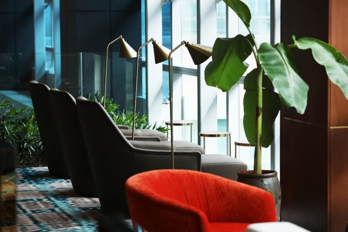 Còn gì tuyệt vời hơn khi vừa thưởng thức một ly café thơm hay nhấm nháp hoa quả tươi ngon từ khu phục vụ buffet và cocktail, vừa phóng tầm mắt ra không gian xanh mát bên dưới, cảm nhận chất diệp lục như ngấm vào từng giác quan, xoa dịu những mệt mỏi khi chờ chuyến bay.